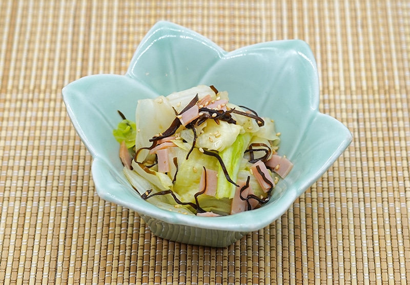 茹でキャベツとハムの塩昆布和え